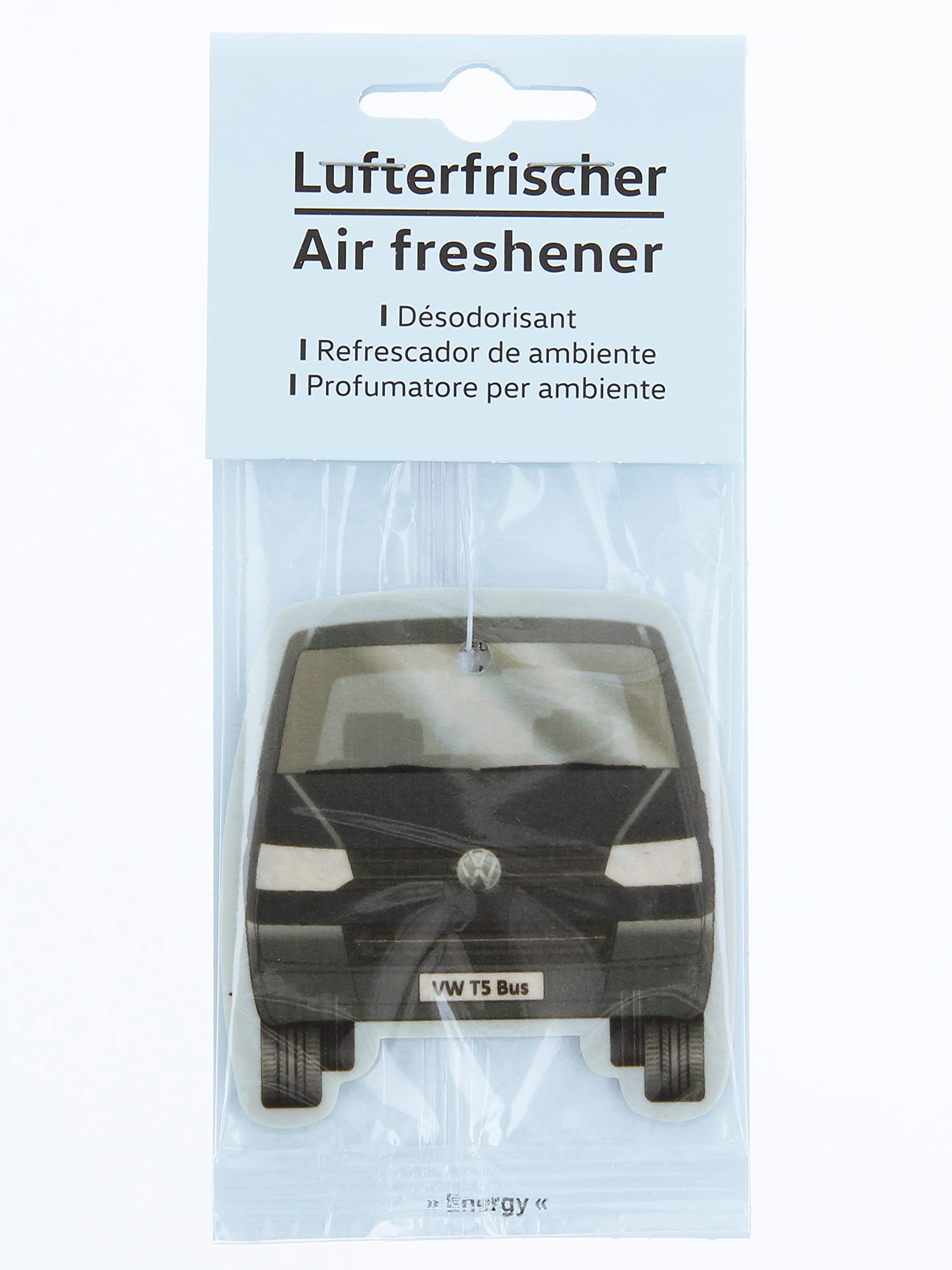 - FRAGRANCE: Powerful, invigorating "Energy" in the color Black. Great air freshener in the design of VW T5 Bus in front and rear view, sold individually. Dimensions: 7.6 x 8 cm (3 x 3.1 inches).