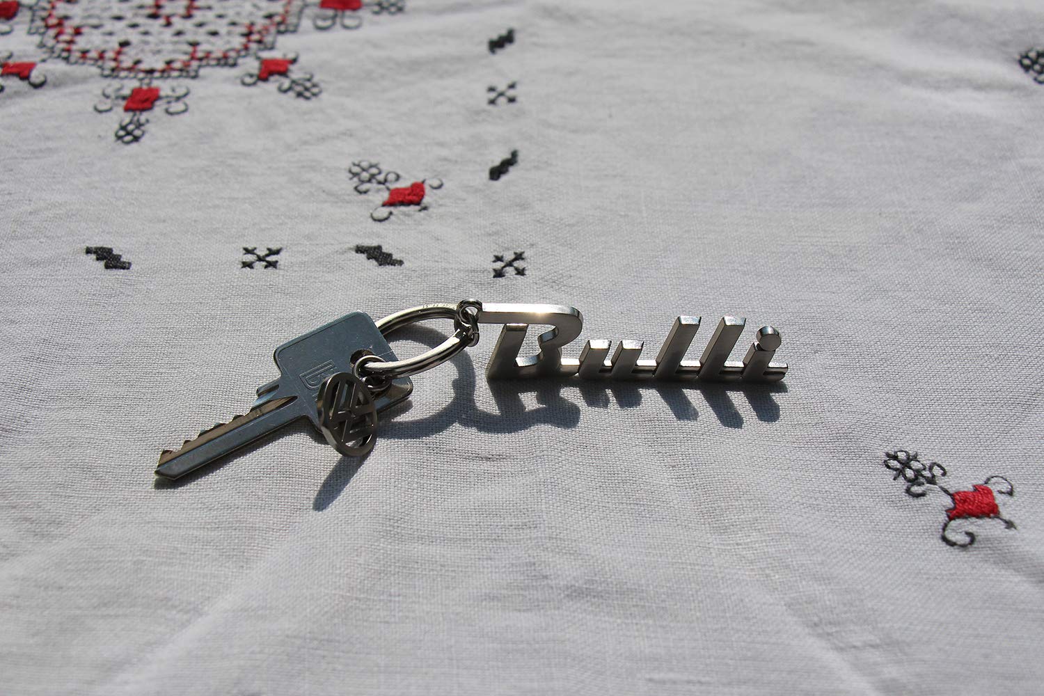 BULLI SILVER: This iconic VW keychain spells the T1 Bus's German nickname "Bulli". The keychain is also adorned with a VW logo charm. Dimensions: 10.5 x 3.5 x 0.3 cm (4.1 x 1.4 x 0.1 inches).