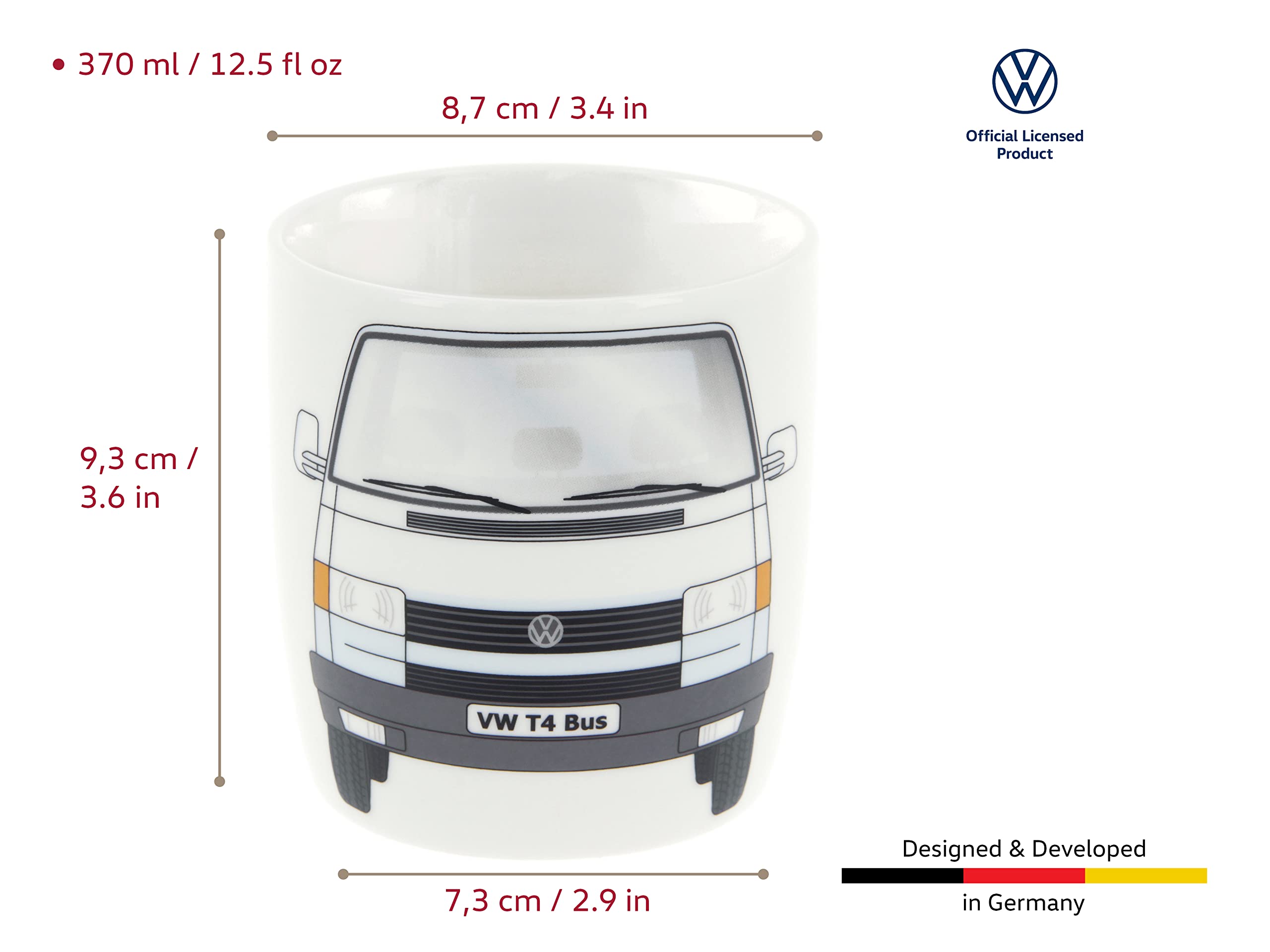 - OFFICIALLY LICENSED: The stylish coffee mug in VW T4 Bus design is an officially licensed Volkswagen product. All our items are developed in Germany to meet our high quality standards.