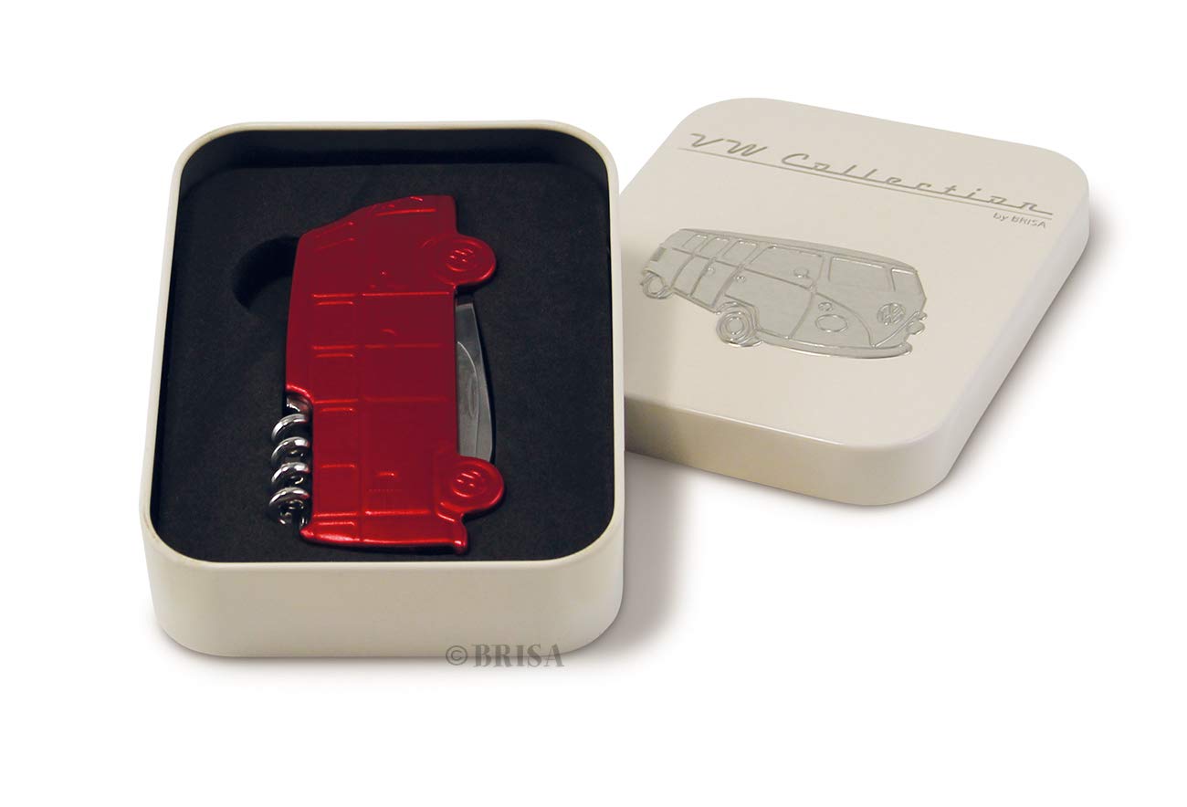 - CLASSIC Bus/RED: A sturdy pocket knife in red, shaped like a VW Bus, with many practical functions such as a knife, scissors, bottle and can opener, and corkscrew. Dimensions: 9.3 x 4.3 x 1.2 cm (3.7 x 1.7 x 0.5 inches).