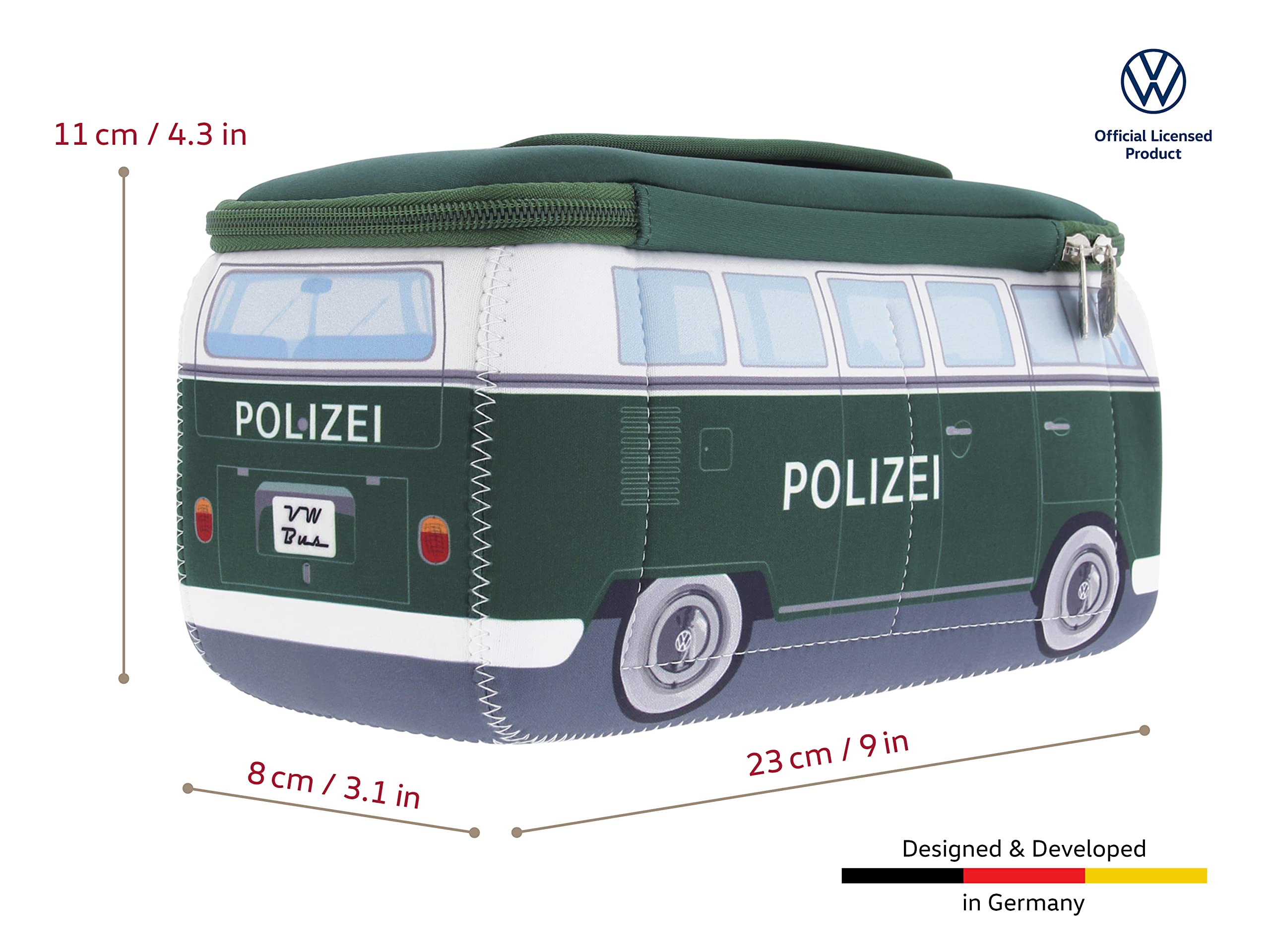 - POLICE Large: This T1 Bus cosmetic bag is in dark green and white and features a blue light, as well as the "Polizei" lettering. Dimensions: 30 x 14 x 12 cm (11.8 x 5.5 x 4.7 inches).